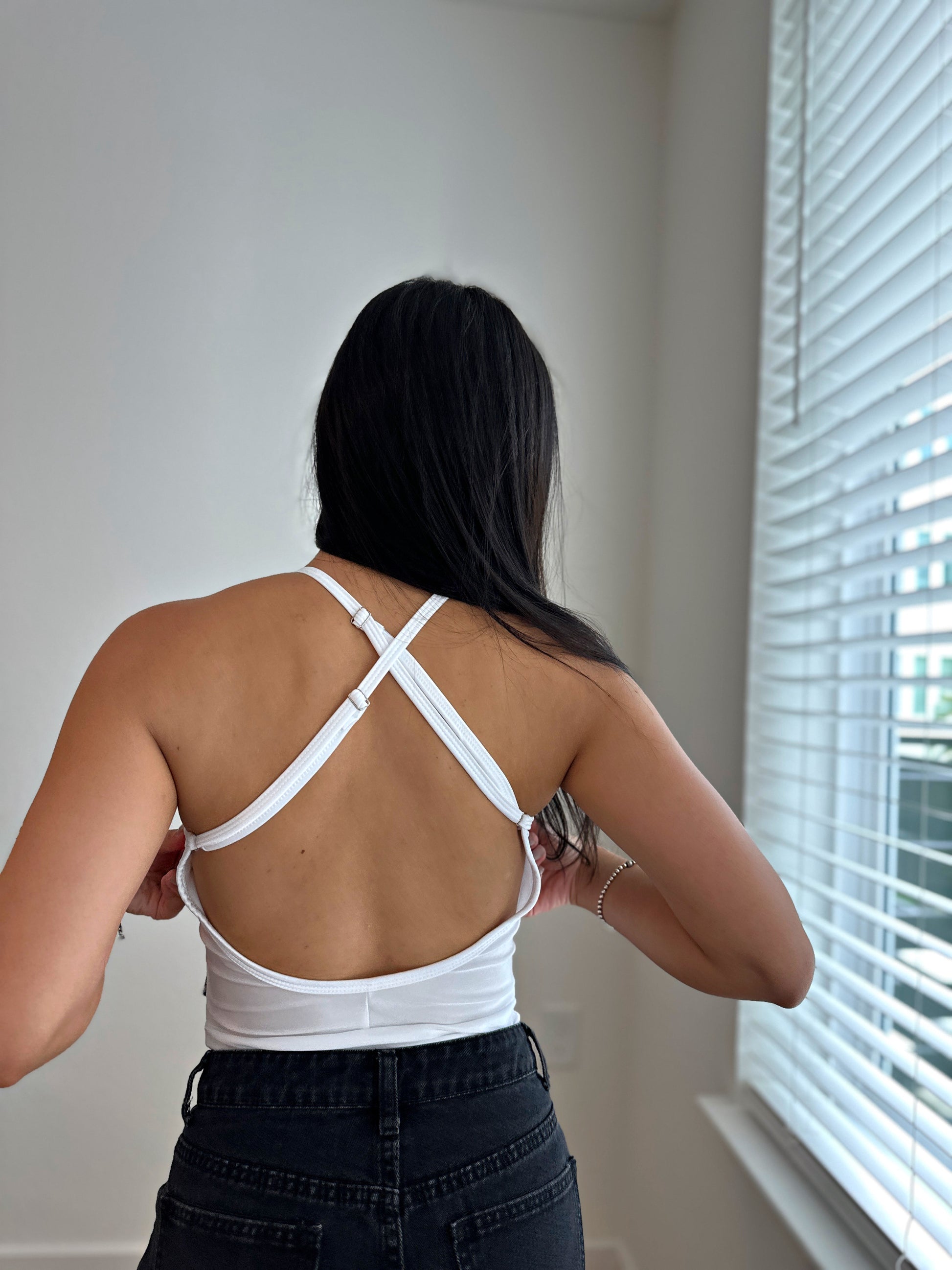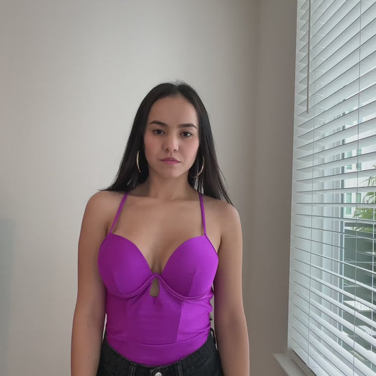 The perfect bodysuit for comfort, style, and versatility. Made from bikini-style fabric with great stretch and a flawless fit, it naturally enhances your silhouette. Its structured cups shape the bust, and the V-neckline with a central cutout provides just the right amount of sexy and sophisticated touch.